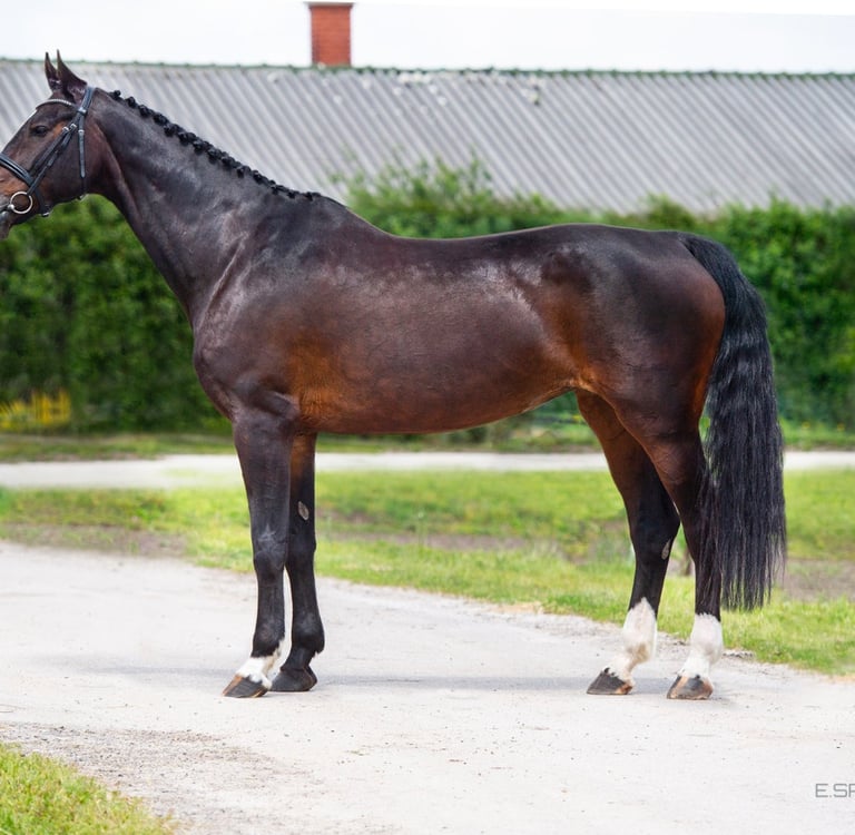 Calandra is a premium Holsteiner mare who competed up to international Grand Prix level and descends from the legendary Olympic dam line of Fein Cera, bred by the renowned Harm Thormählen. She jumped internationally, produces exceptional offspring, including the international competitor Quick Cera.